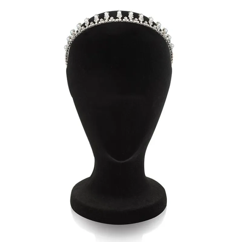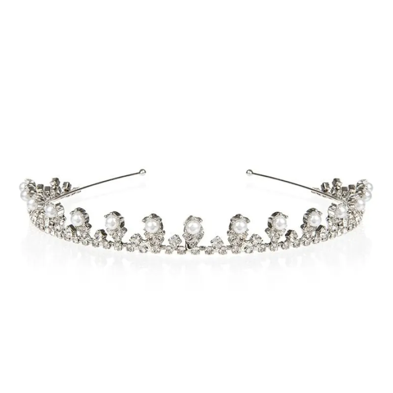 With Elegant Floral Elements, This Delicate Tiara Beautifully Sparkles With Crystals Of The Highest Quality And Shimmers With Pearls. All Held Into White Gold Plated Base Metal, This Tiara Would Make A Wonderful Bridal Accessory.