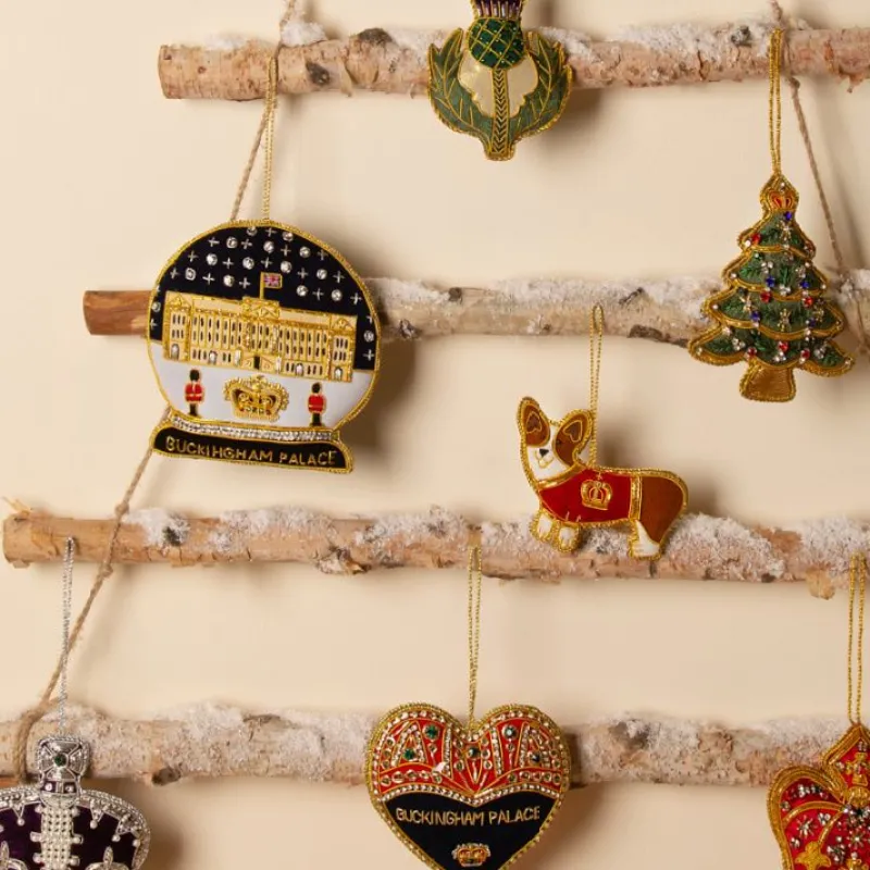 Gaze Into This Wonderful Snow Globe To Discover The Iconic Royal Residence, Buckingham Palace. Surmounted By A Starry Night Sky And Covered In A Blanket Of Snow, This Magnificent Decoration Is Hand Embroidered With Faux Pearls, And Iridescent Beading.