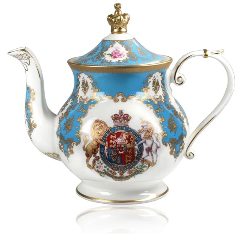 Serve Your Guests A Refreshing Cup Of Tea From This Wonderful Coat Of Arms Teapot. The Design Is Inspired By A Beautiful Hand Painted Plate Found In The Royal China Pantry, Buckingham Palace, Featuring The Coat Of Arms Of George Iv And William Iv Surrounded With Blush Pink English Roses And Finished With 22 Carat Gold.