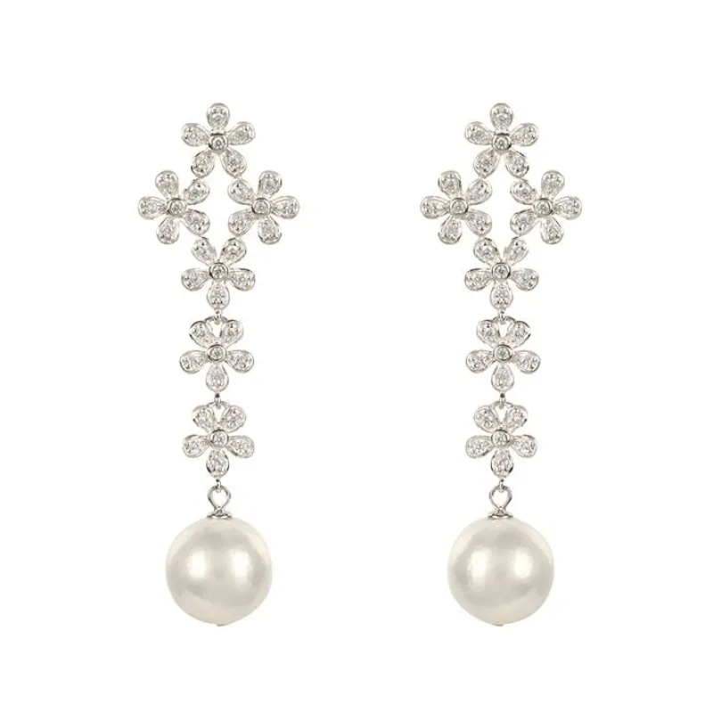 These Elegant Earrings Have Intricate Crystal, Floral Detail And Are Beautifully Finished With A Freshwater Pearl Drop.
