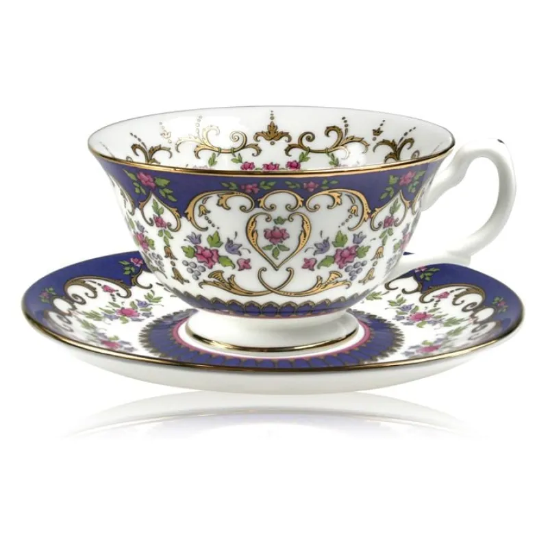 Enjoy Sipping Tea From This Delicate Teacup And Saucer, Beautifully Decorated With 22 Carat Gold Scrollwork And Floral Garlands.