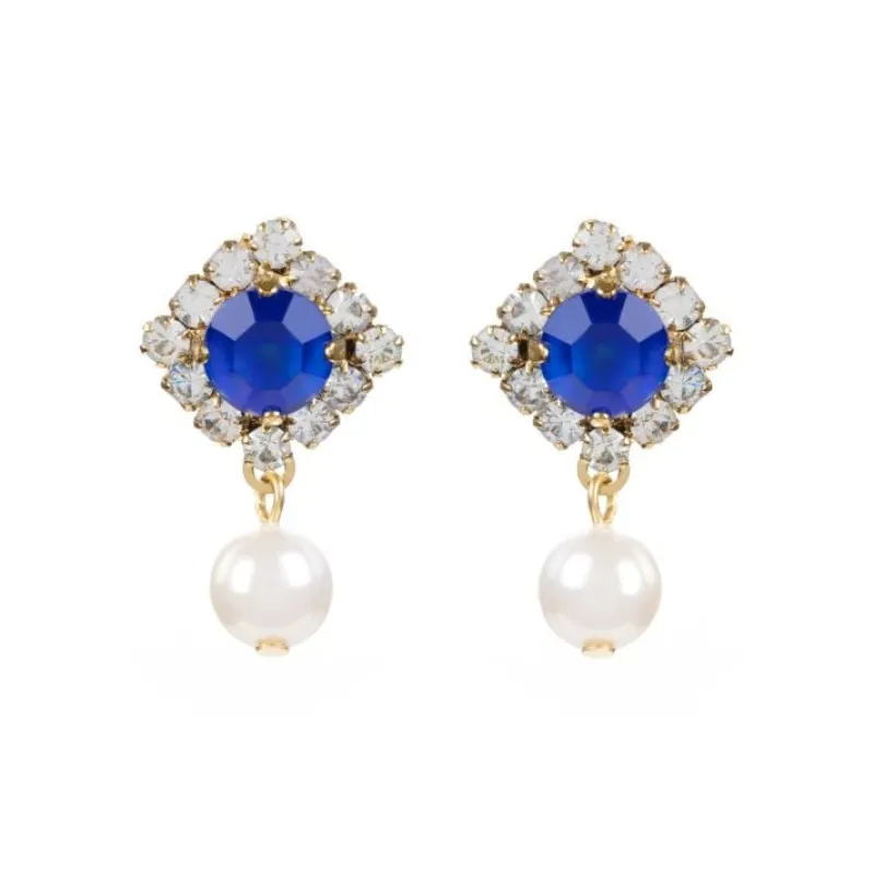 23Kt Gold Plating, Clear Crystals, 1 White Faux Pearl And Hand Painted Blue Crystal
