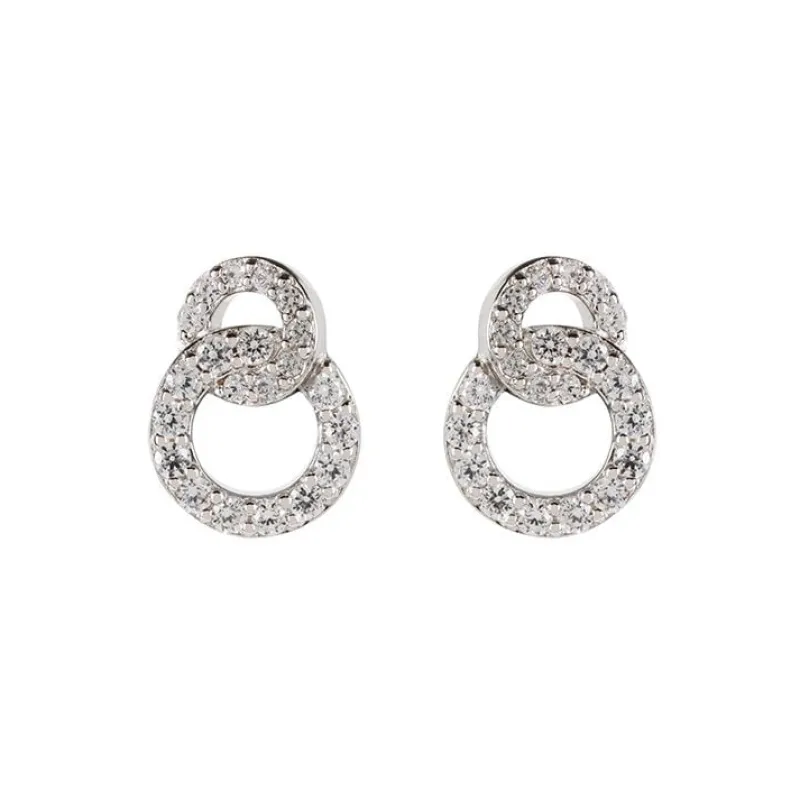 Elegant Silver Stud Earrings Set With Glittering Cubic Zirconia Crystals.